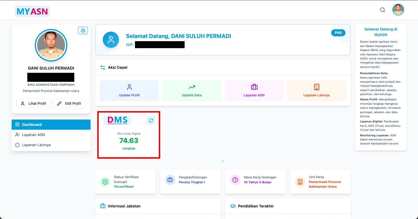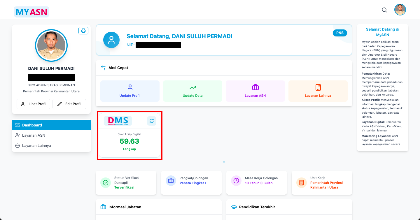 Dewasa ini, pengelolaan kepegawaian kian mengarah ke arah otomasi dan digitalisasi. Salah satu aspek kunci dari otomasi dan digitalisasi pengelolaan kepegawaian ini adalah hadirnya Document Management System (DMS) yang terintegrasi dengan layanan kepegawaian MyASN (https://myasn.bkn.go.id/) atau Portal ASN Digital (https://asndigital.bkn.go.id/).
