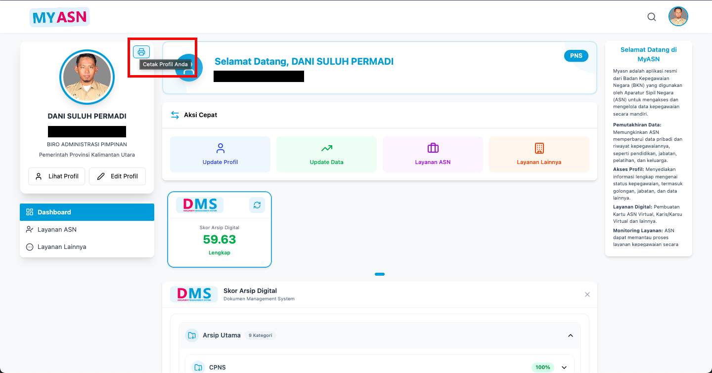 Tampilan Dashboard MyASN: